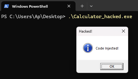python3 inject_section.py Calculator_section.exe Calculator_final.exe 0x9000